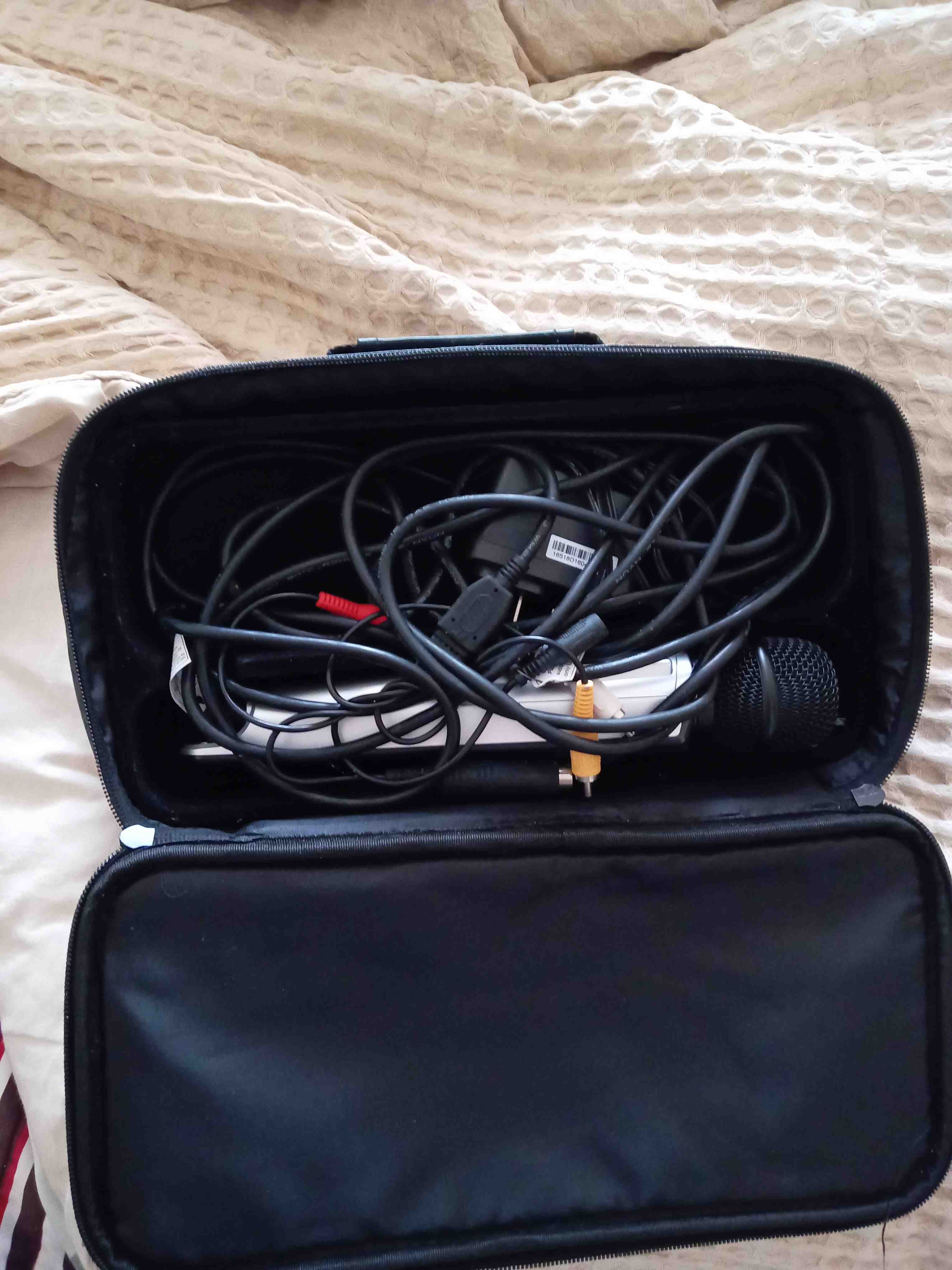 Este conjunto incluye un micrófono de mano ideal para presentaciones, karaoke o grabaciones. Viene con un estuche de transporte para facilitar su movilidad y almacenamiento. Incluye varios cables de conexión para adaptarse a diferentes dispositivos. Su diseño compacto y ligero lo hace fácil de usar en cualquier lugar. Perfecto para aficionados y profesionales del audio.