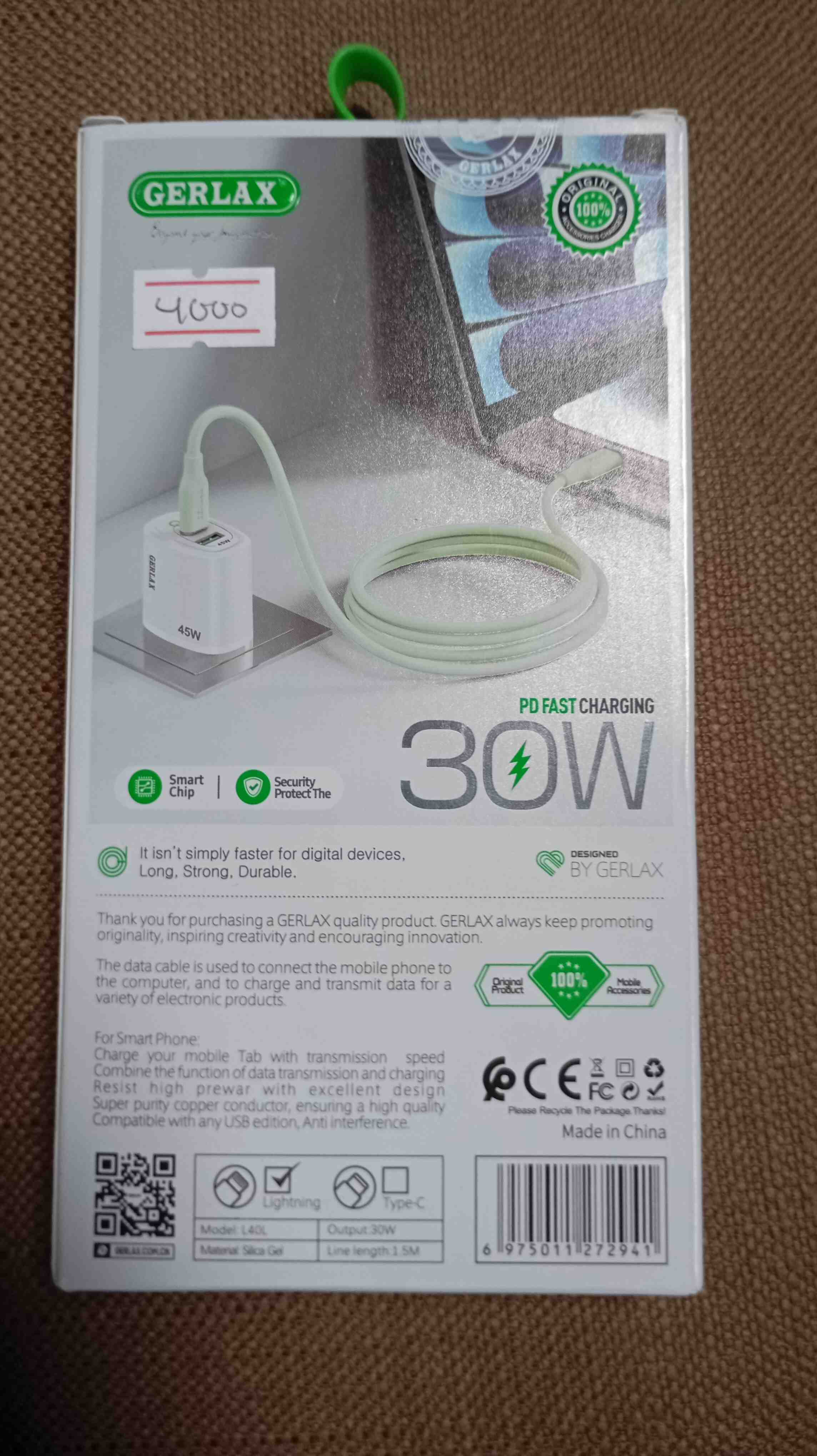 El cable de silicona suave Gerlax ofrece una carga rápida de 30W, ideal para dispositivos que requieren alta eficiencia. Su diseño incluye un chip inteligente para una carga segura y protección contra sobrecalentamiento. Es antifrío, ignífugo y seguro para niños, garantizando durabilidad y seguridad. Con una longitud de 1.5 metros, es perfecto para el uso diario.