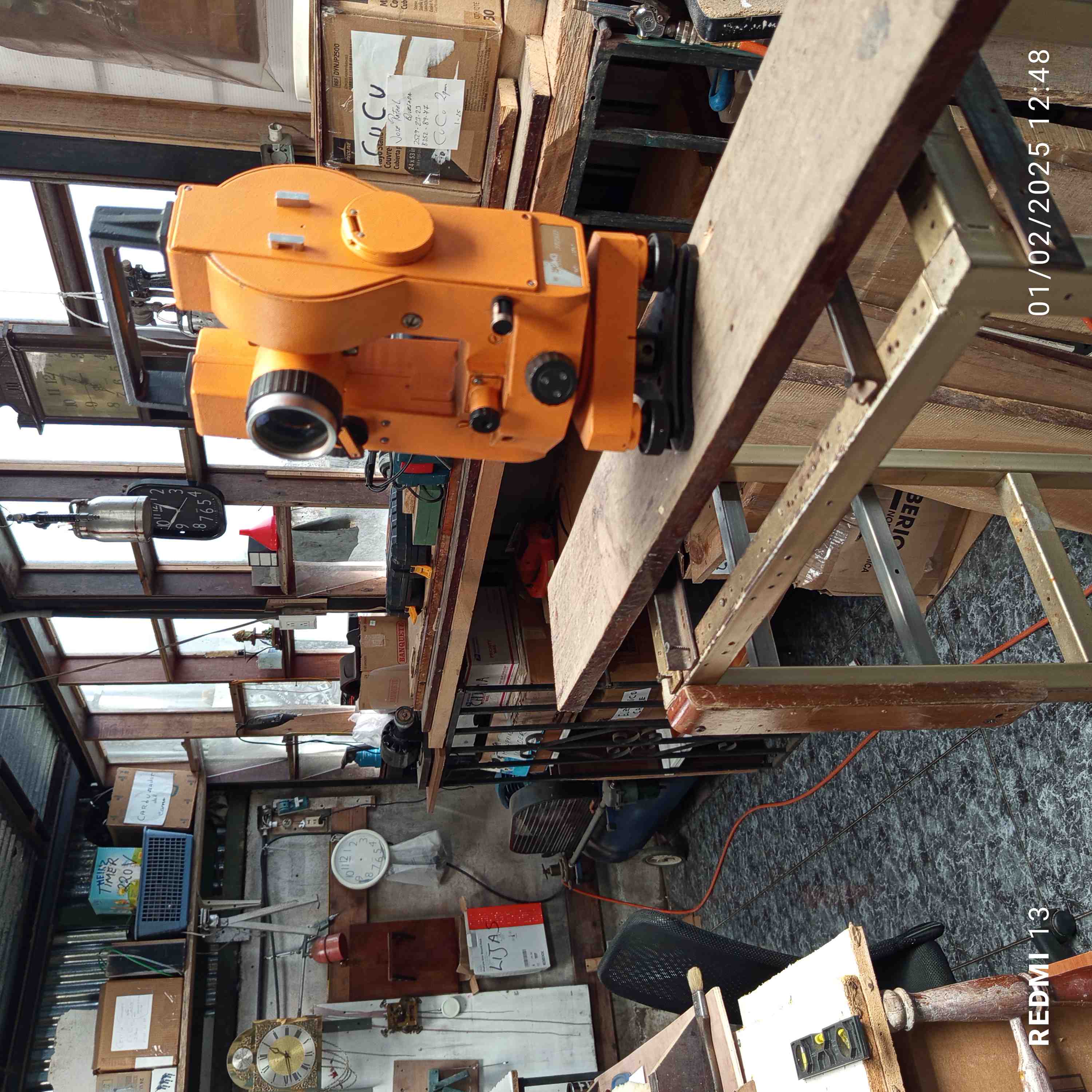 Este teodolito de color naranja es ideal para trabajos de topografía y construcción. Su diseño robusto y preciso permite realizar mediciones angulares con gran exactitud. Es una herramienta esencial para ingenieros y arquitectos que buscan calidad y durabilidad en sus instrumentos de medición. Su estructura está diseñada para resistir condiciones de trabajo exigentes, asegurando un rendimiento óptimo en cada uso.es usado y ha estado guardado mucho tiempo...