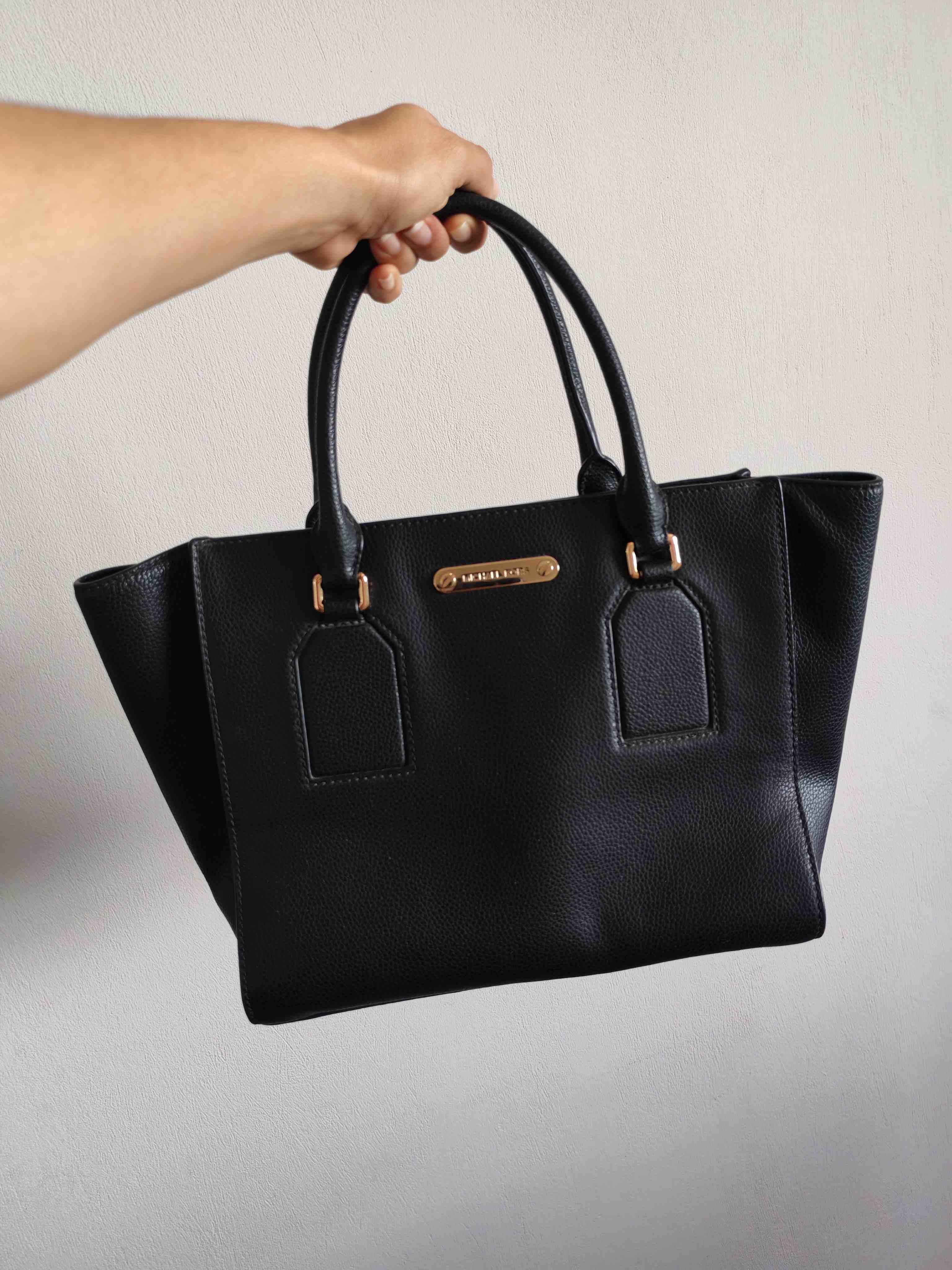 Este bolso negro es perfecto para cualquier ocasión. Fabricado con cuero. Con asas resistentes, es cómodo de llevar y tiene un amplio espacio interior para tus pertenencias.