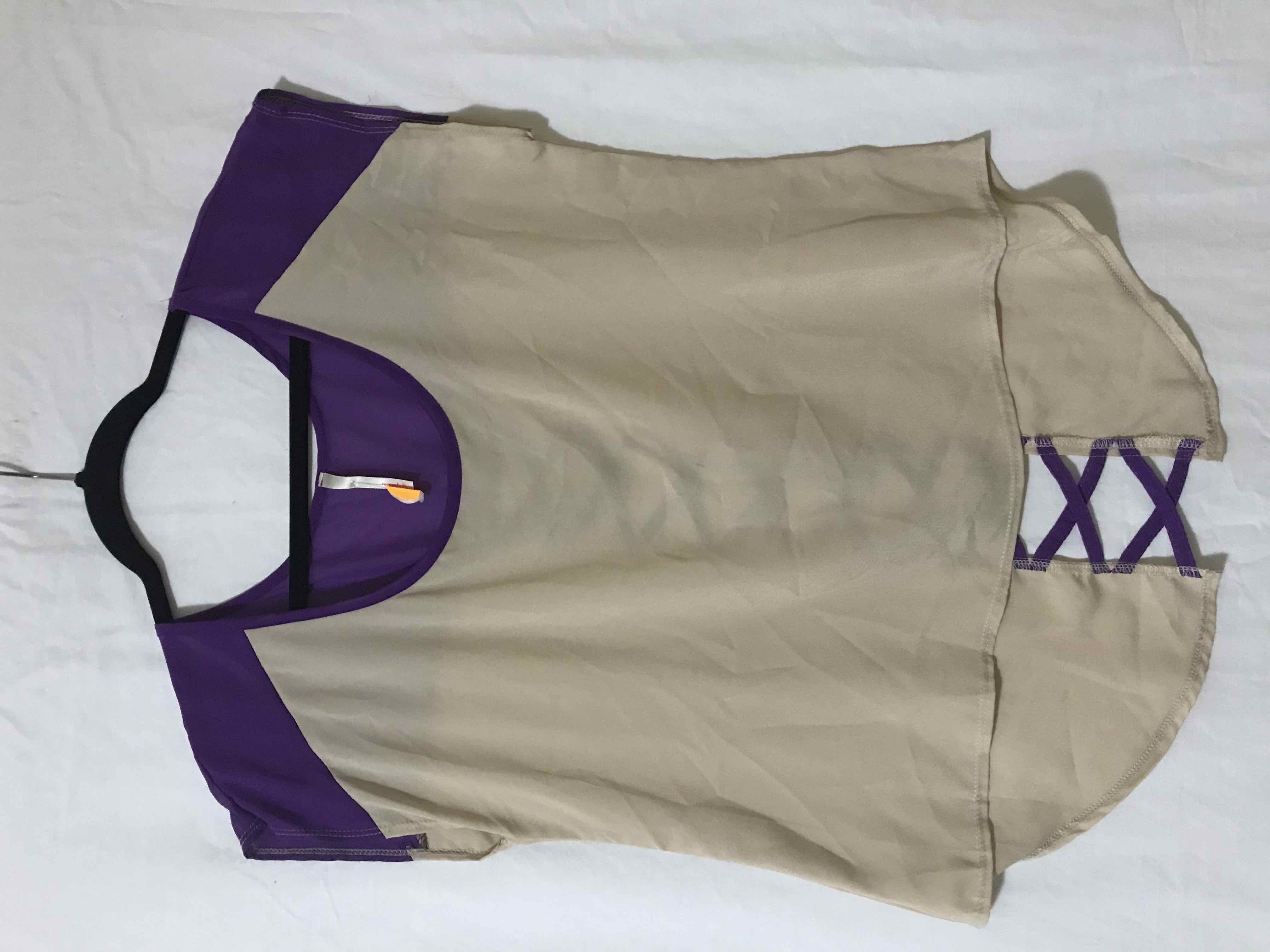 Esta blusa elegante presenta un diseño bicolor en tonos beige y morado, ideal para ocasiones casuales o formales. Su corte asimétrico y detalles en la parte trasera añaden un toque moderno y sofisticado. Fabricada con materiales ligeros, ofrece comodidad y estilo en cualquier temporada. Perfecta para combinar con pantalones o faldas, esta prenda es un imprescindible en cualquier guardarropa. Su diseño versátil permite adaptarse a diferentes estilos y preferencias.