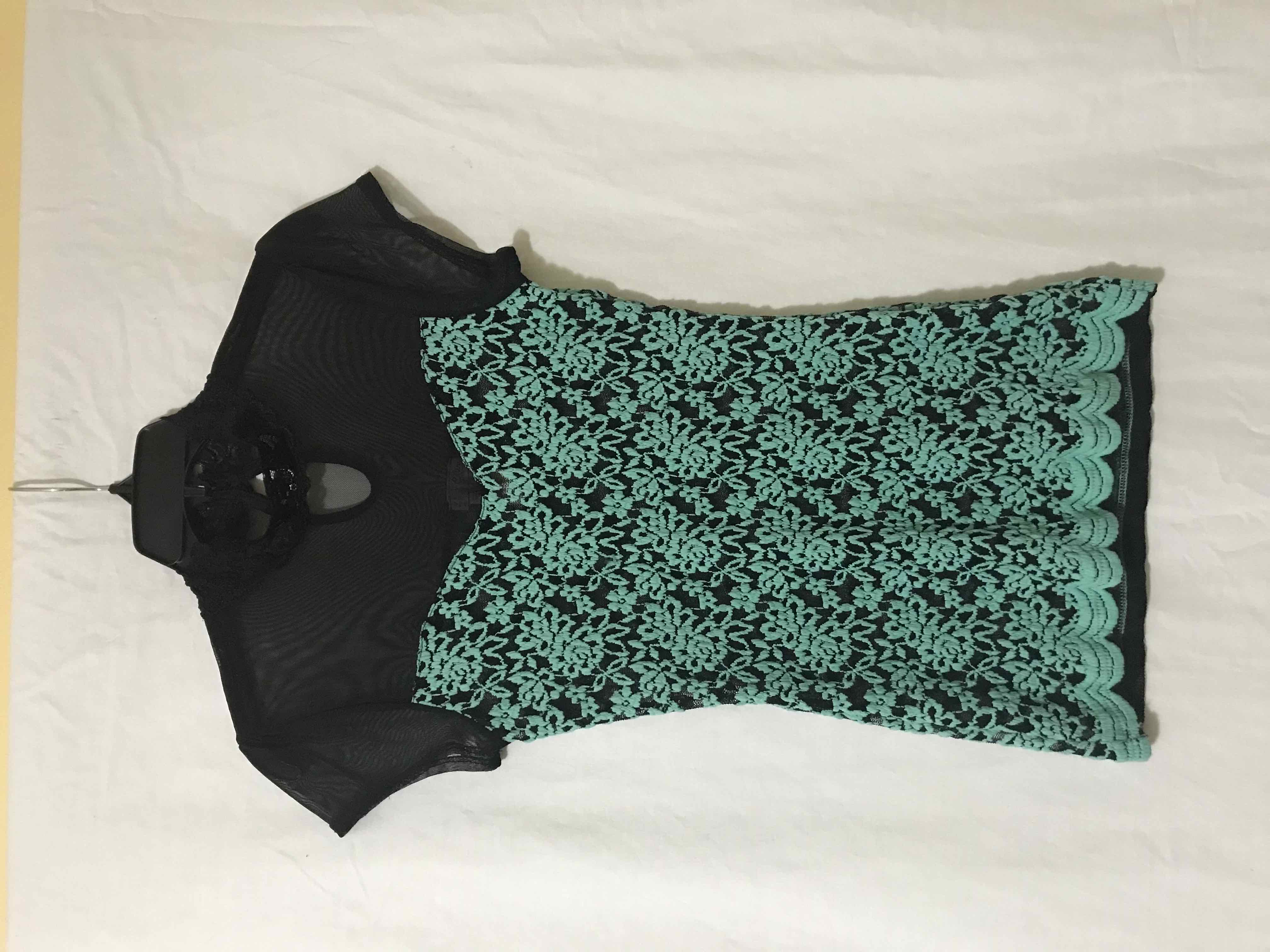 Este vestido elegante presenta un diseño de encaje floral en color verde sobre una base negra, creando un contraste sofisticado. La parte superior del vestido es de malla negra, añadiendo un toque moderno y chic. Ideal para eventos formales o una noche especial, este vestido es una pieza única que resalta la figura. Su diseño sin mangas y el detalle de encaje en el borde inferior lo hacen perfecto para lucir con confianza y estilo.