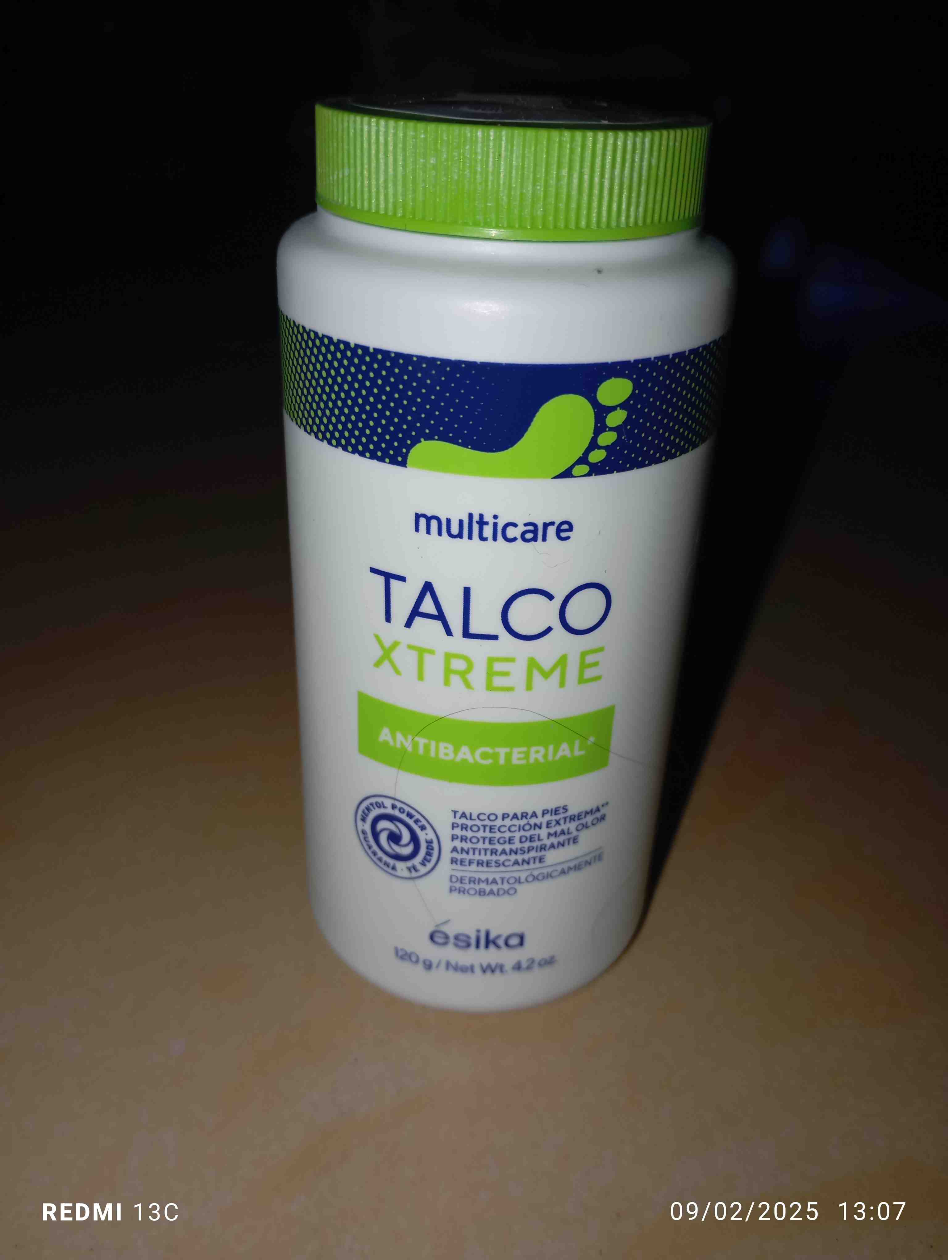 El Talco Xtreme Antibacterial de ÉsiKa es ideal para el cuidado de tus pies. Ofrece protección extrema contra el mal olor y es antitranspirante, manteniendo tus pies frescos y secos. Dermatológicamente probado, este talco es perfecto para el uso diario, asegurando una sensación de frescura prolongada.