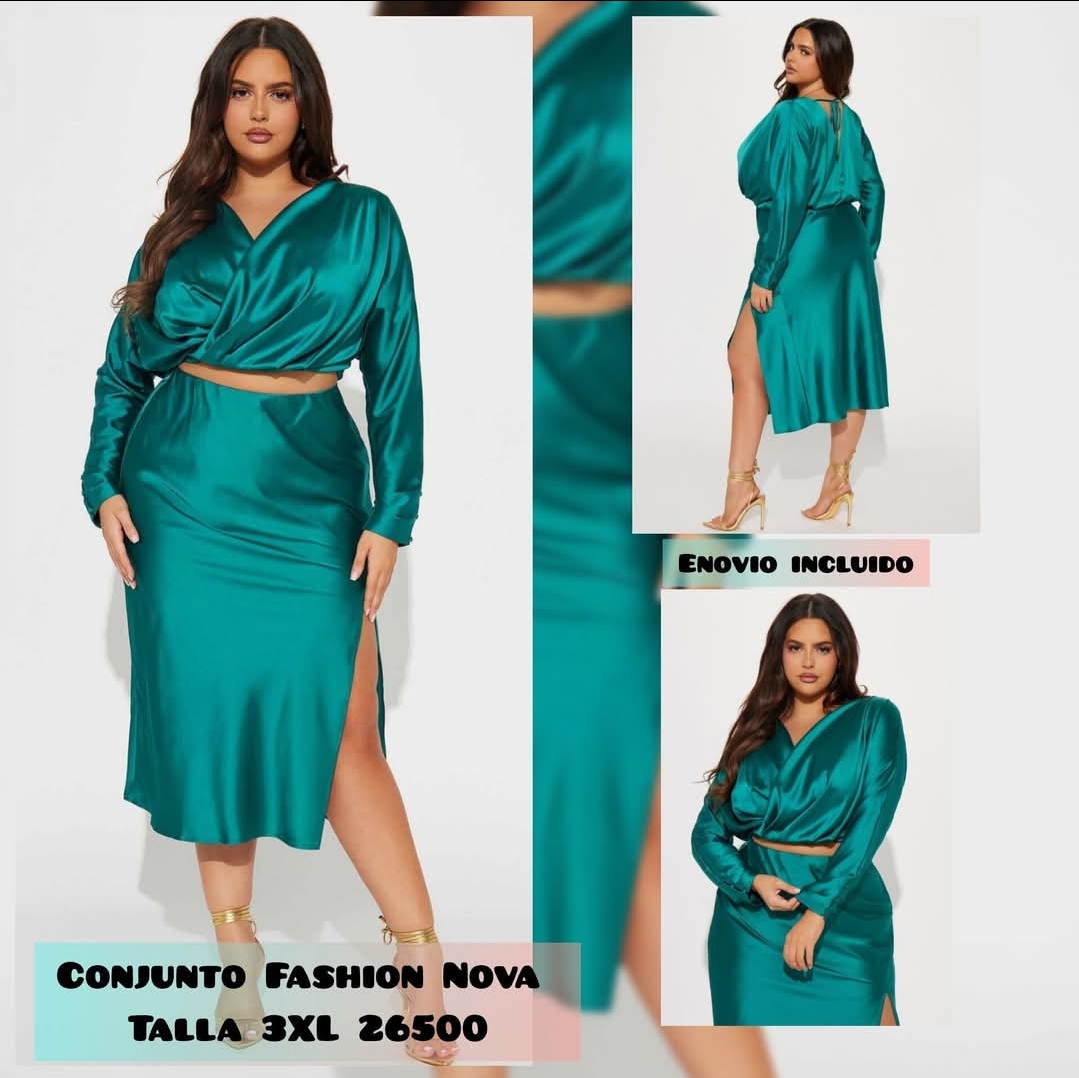 Este elegante conjunto de Fashion Nova en talla 3XL es perfecto para cualquier ocasión especial. Confeccionado en un vibrante color verde esmeralda, el conjunto incluye una blusa cruzada de manga larga y una falda con abertura lateral, que añade un toque de sofisticación. El material satinado ofrece un acabado lujoso y cómodo, ideal para destacar en cualquier evento. Además, el envío está incluido en el precio, lo que lo convierte en una opción aún más atractiva.