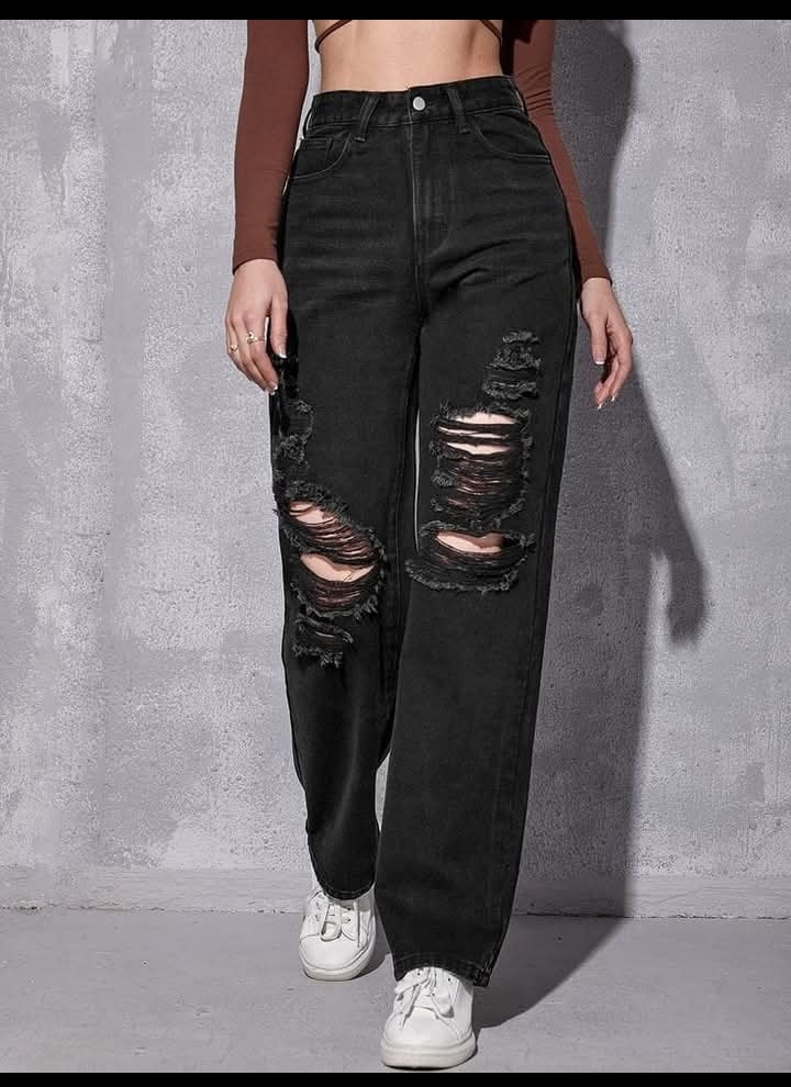 Pantalón negro rasgado marca Denin Lovers super. Oferta. Rebajado de 6500 a 4500