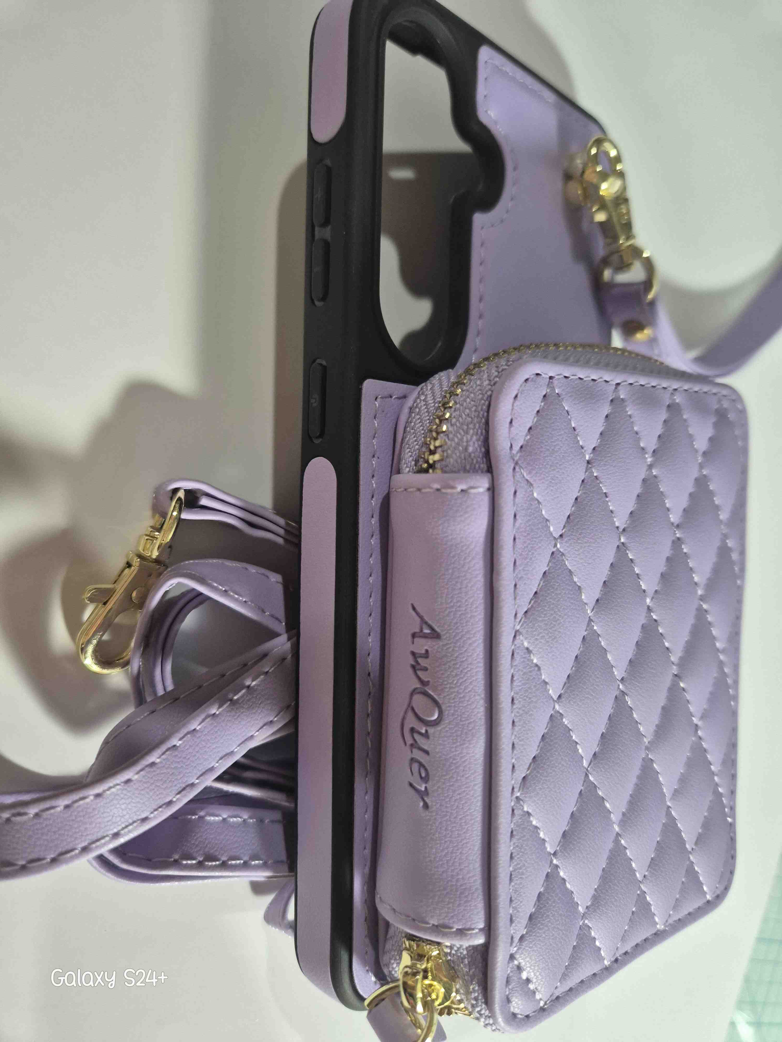 Esta elegante funda para Galaxy S24+ combina protección y funcionalidad. Fabricada en un atractivo color lila, cuenta con un monedero integrado con diseño acolchado y cierre de cremallera. Incluye una correa ajustable para llevar cómodamente. Ideal para quienes buscan estilo y practicidad en un solo accesorio.