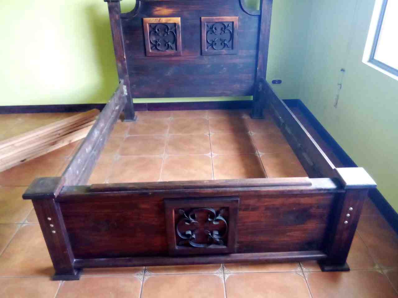 Fabricada con madera de alta calidad, presenta un diseño robusto y duradero. Los detalles tallados en el cabecero y pie de cama añaden un toque de elegancia.