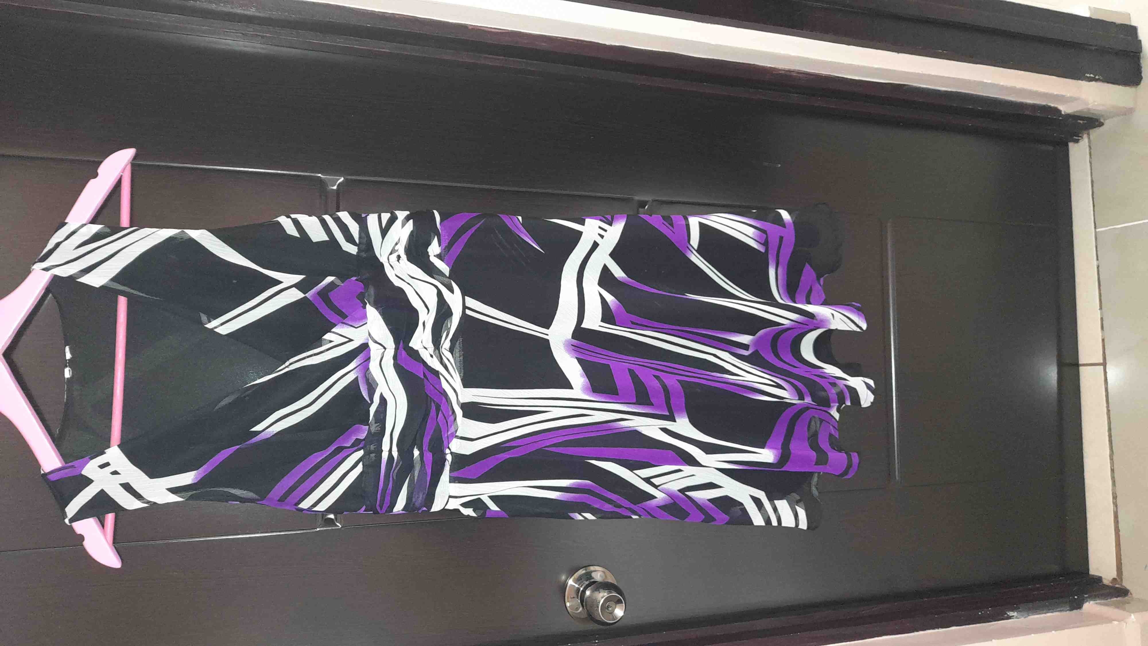 Este vestido presenta un diseño moderno con un estampado geométrico en tonos morados, blancos y negros. Ideal para ocasiones especiales, su corte favorecedor resalta la figura. Confeccionado en un tejido ligero, ofrece comodidad y estilo. Perfecto para destacar en cualquier evento social.