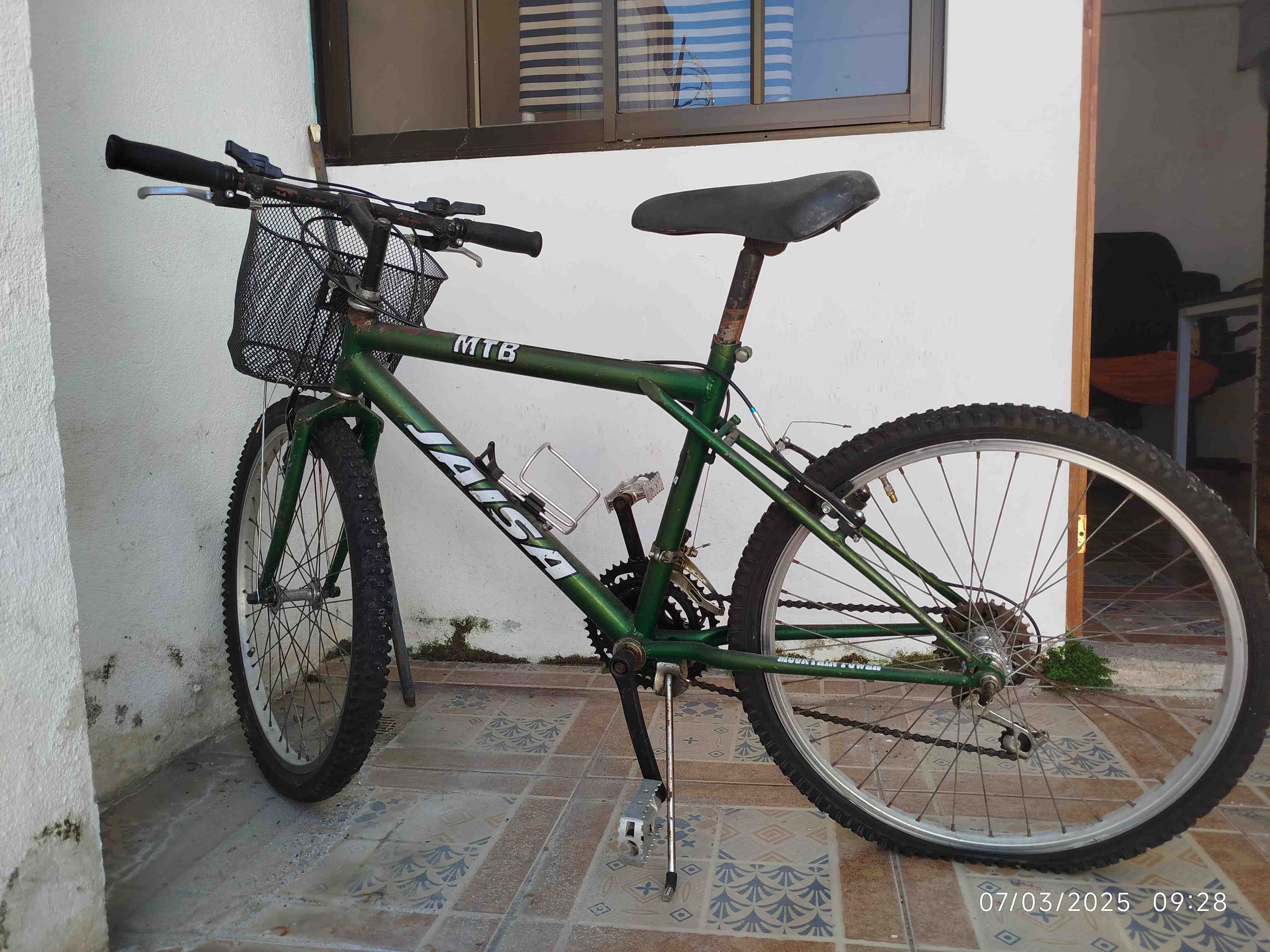 Esta bicicleta de montaña Jaisa es ideal para quienes buscan aventuras al aire libre. Con un diseño robusto y un marco verde, está equipada con neumáticos de agarre para terrenos difíciles. Incluye una canasta delantera para mayor comodidad en tus paseos. Perfecta para ciclistas que desean explorar caminos y senderos con estilo y seguridad.