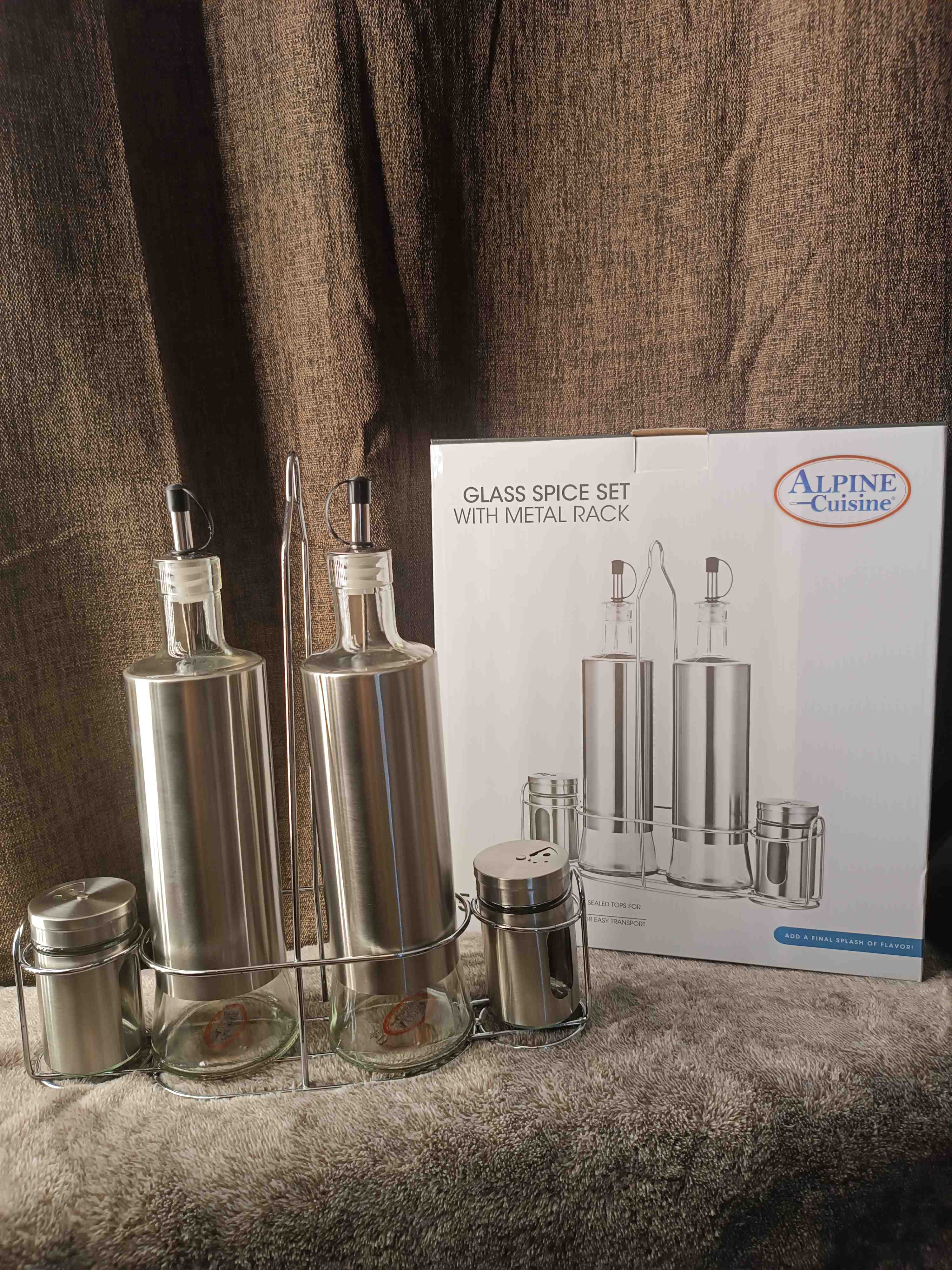 Este elegante set de especias de vidrio de Alpine Cuisine incluye un soporte metálico que organiza y embellece tu cocina. Los recipientes de vidrio son ideales para almacenar tus especias favoritas, manteniéndolas frescas y accesibles. El diseño moderno y funcional se adapta a cualquier estilo de cocina, ofreciendo una solución práctica y decorativa. Perfecto para chefs caseros y amantes de la cocina que buscan calidad y estilo.