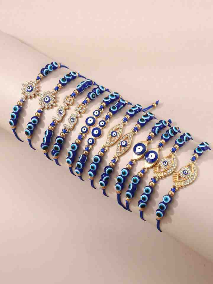 Estas pulseras presentan un diseño único con el tradicional ojo turco, conocido por su simbolismo de protección. Cada pulsera está adornada con cuentas azules y detalles dorados que resaltan su atractivo visual. Son ajustables, lo que las hace adecuadas para cualquier tamaño de muñeca. Ideales para usar como accesorio diario o para regalar a alguien especial. Su diseño versátil permite combinarlas con diferentes estilos de vestimenta.
