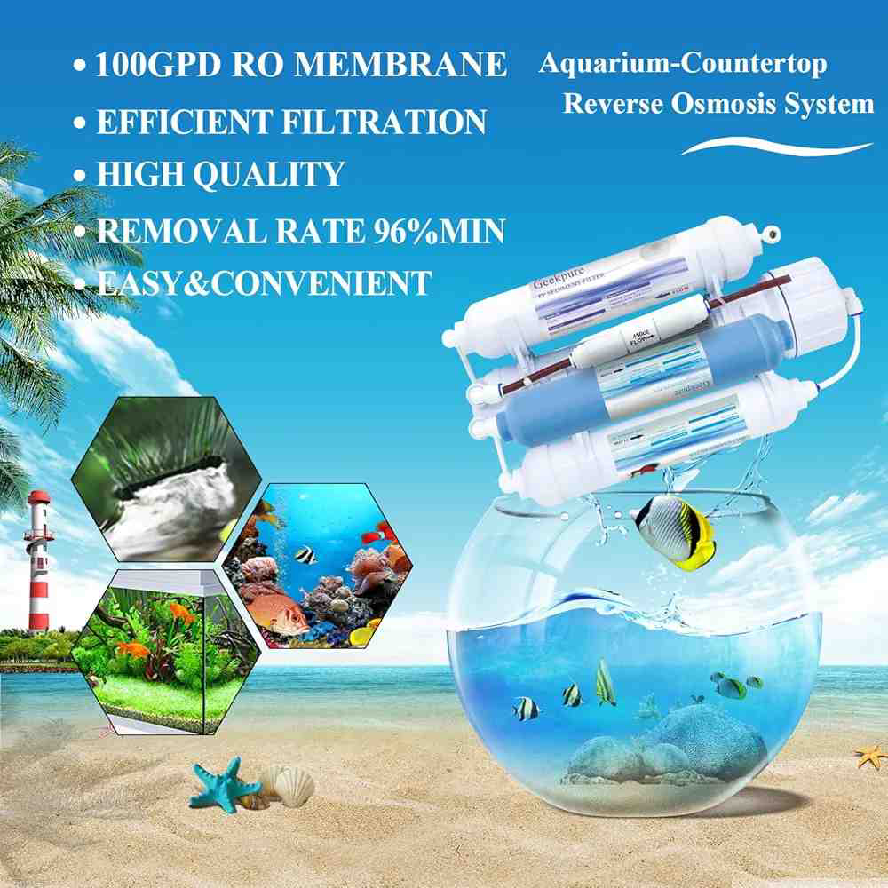 Este sistema de ósmosis inversa está diseñado para acuarios, ofreciendo una filtración eficiente y de alta calidad. Con una membrana de 100 GPD, garantiza una tasa de eliminación de impurezas de al menos el 96%. Es fácil y conveniente de instalar, asegurando agua pura para tus peces y plantas acuáticas. Ideal para mantener un ambiente saludable en tu acuario.