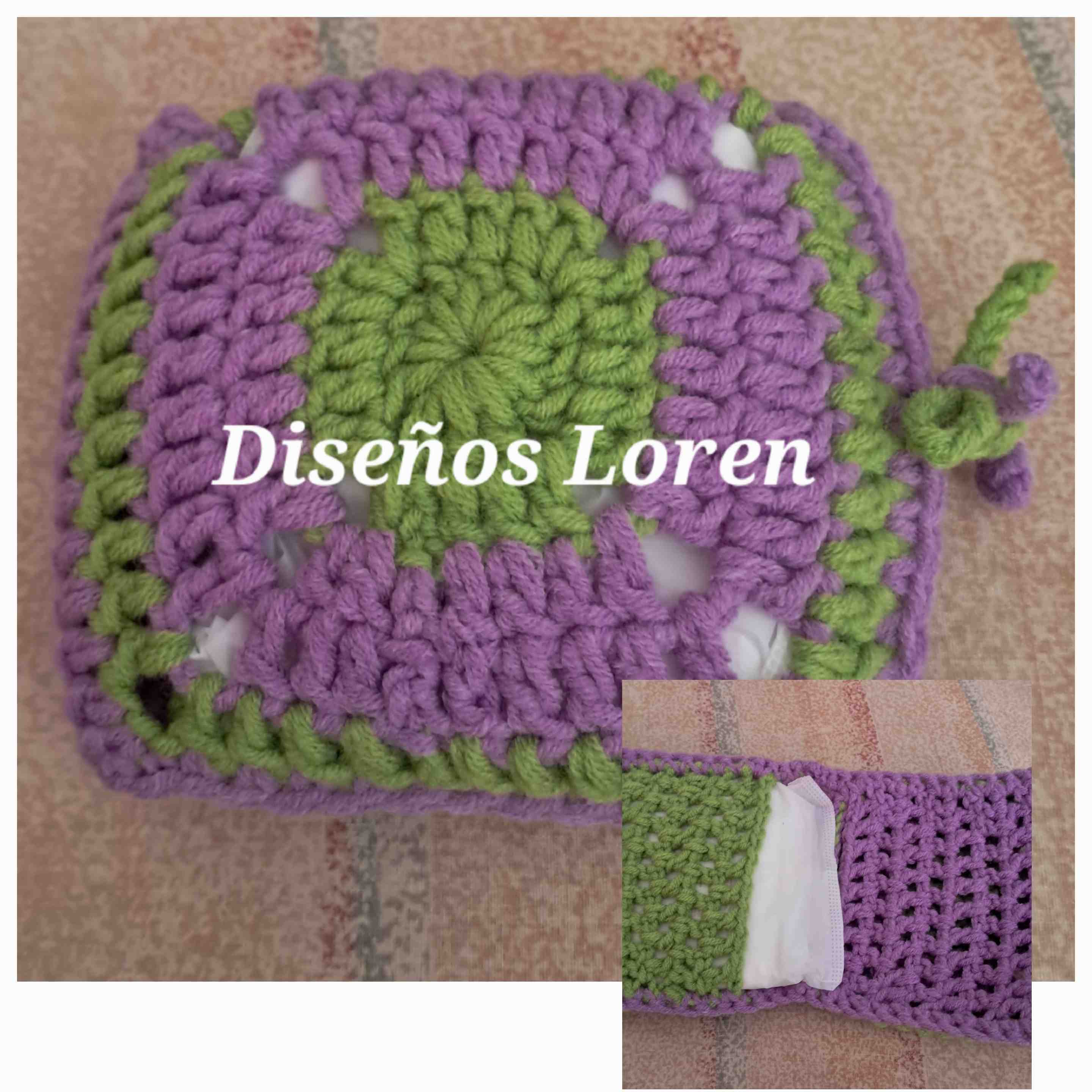 Esta funda está elaborada a mano con un diseño de crochet en colores morado y verde. Es ideal para cubrir y proteger objetos pequeños, como pañuelos o servilletas. El tejido es suave al tacto y permite una fácil apertura y cierre gracias a su diseño ajustable. Perfecta para añadir un toque artesanal y colorido a cualquier espacio. Su tamaño compacto la hace fácil de transportar y colocar en cualquier lugar.
