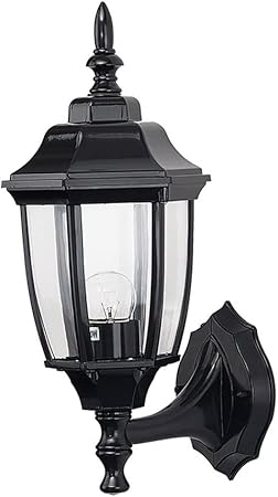 Esta lámpara de pared exterior presenta un diseño clásico y elegante, ideal para iluminar entradas, patios o jardines. Fabricada en plastico resistente, ofrece durabilidad y un acabado en color negro que combina con cualquier estilo arquitectónico. El vidrio transparente permite una excelente difusión de la luz, creando un ambiente acogedor. Compatible con bombillas estándar, es fácil de instalar y mantener. Su diseño resistente a la intemperie asegura un rendimiento óptimo en exteriores.