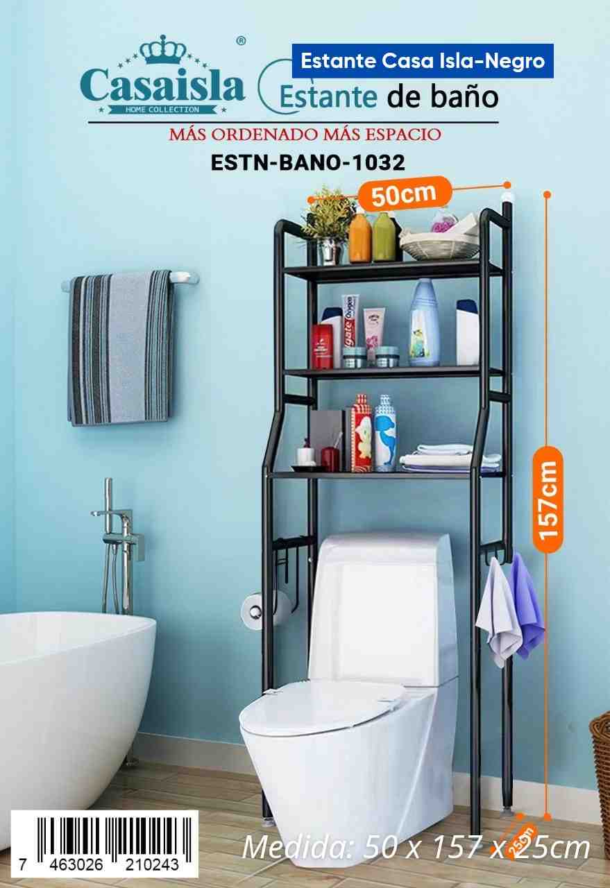 El estante Casa Isla en color negro es una solución práctica para organizar tu baño. Con un diseño vertical, maximiza el espacio disponible al colocarse sobre el inodoro. Fabricado con materiales resistentes, ofrece durabilidad y estabilidad. Sus tres niveles permiten almacenar productos de higiene personal, toallas y otros accesorios de baño. Las dimensiones del estante son 157 cm de alto, 50 cm de ancho y 25 cm de profundidad, adaptándose a diferentes espacios. Ideal para mantener el baño ordenado y con fácil acceso a los artículos necesarios.