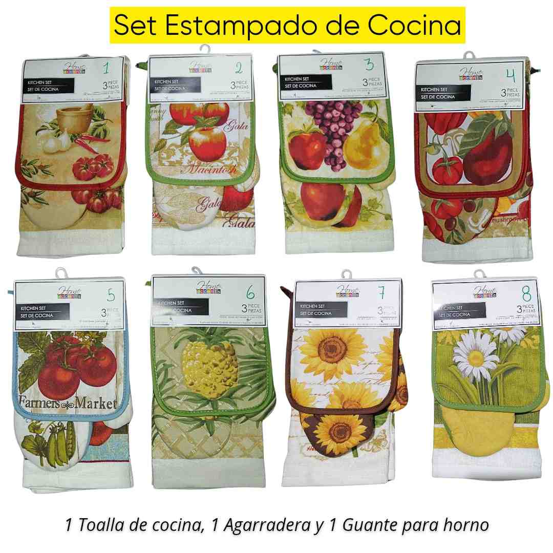 Este set de cocina estampado incluye una toalla de cocina, una agarradera y un guante para horno, ideal para darle un toque colorido y funcional a tu cocina. Los diseños variados presentan frutas y flores, aportando un estilo fresco y natural. Fabricados con materiales resistentes, estos accesorios son perfectos para el uso diario. La toalla es absorbente, mientras que el guante y la agarradera ofrecen protección contra el calor. Un complemento esencial para cualquier hogar que busca combinar estilo y practicidad.