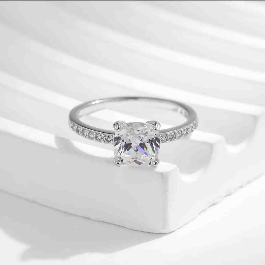 Este anillo de compromiso presenta un diseño elegante con circonia cúbica de corte cuadrado que brilla intensamente. La banda está adornada con pequeñas circonias que añaden un toque de sofisticación. Fabricado en plata 925, este anillo es perfecto para ocasiones especiales. Su diseño clásico y atemporal lo convierte en una elección ideal para simbolizar el amor eterno. El anillo es cómodo de llevar y está disponible en varias tallas: 5,6,7 y 8.