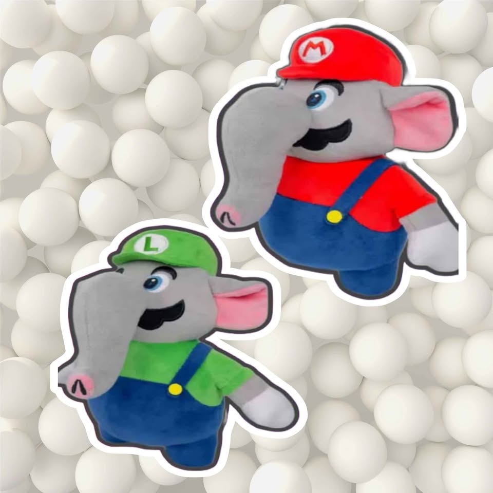 Peluches de elefante Mario y Luigi