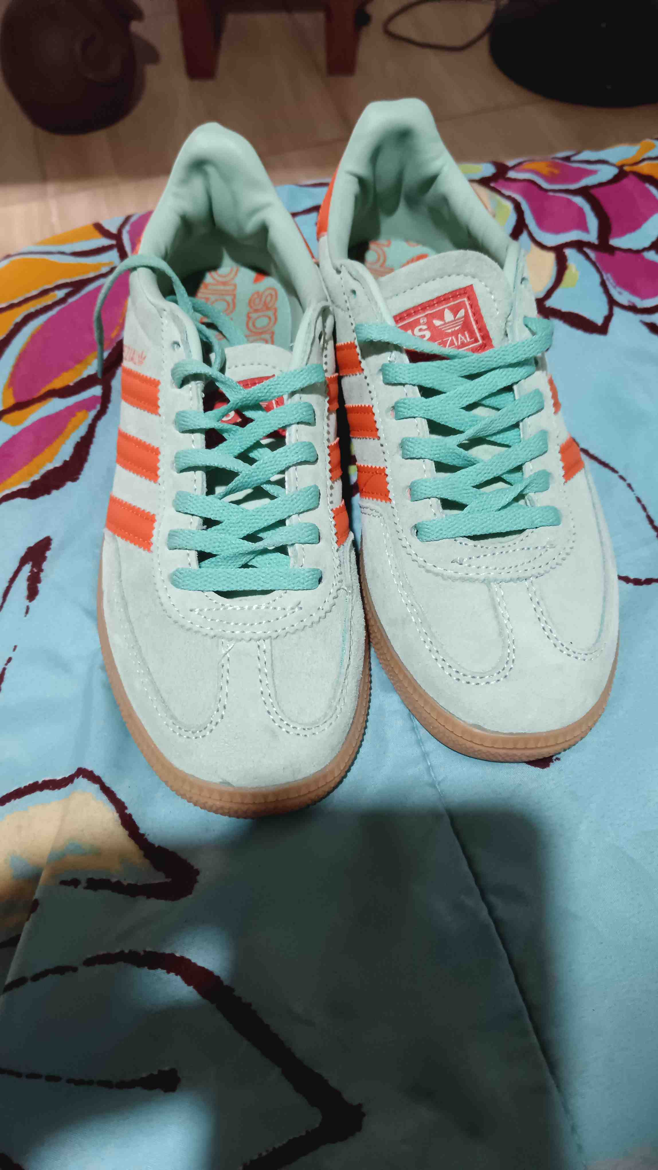 Estos tenis Adidas Gazelle presentan un diseño clásico y atemporal, ideal para el uso diario. Están confeccionados en un material de gamuza suave de color verde menta, con las icónicas tres rayas en color naranja en los laterales. La suela de goma proporciona un excelente agarre y comodidad al caminar. Los cordones en color verde menta complementan el diseño, asegurando un ajuste perfecto. Son perfectos para quienes buscan un calzado versátil y con estilo.