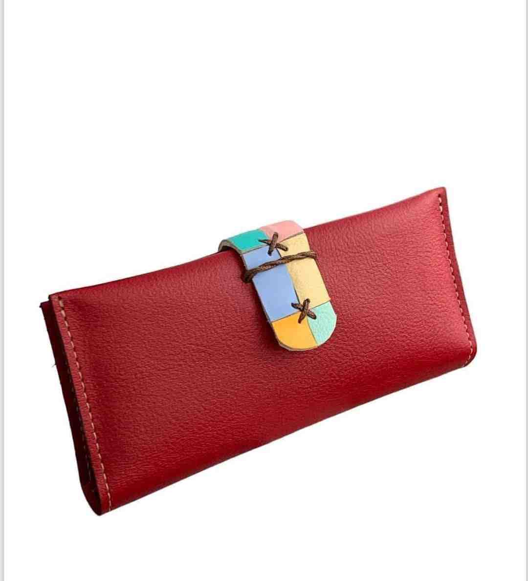 Esta elegante cartera está confeccionada en cuero de alta calidad, ofreciendo durabilidad y un acabado sofisticado. Su diseño en color rojo vibrante la hace destacar, mientras que el cierre decorativo multicolor añade un toque de originalidad. Ideal para llevar tus documentos y dinero de manera segura y con estilo. Su tamaño compacto permite que se ajuste fácilmente en cualquier bolso o mochila. Perfecta para el uso diario o para ocasiones especiales.