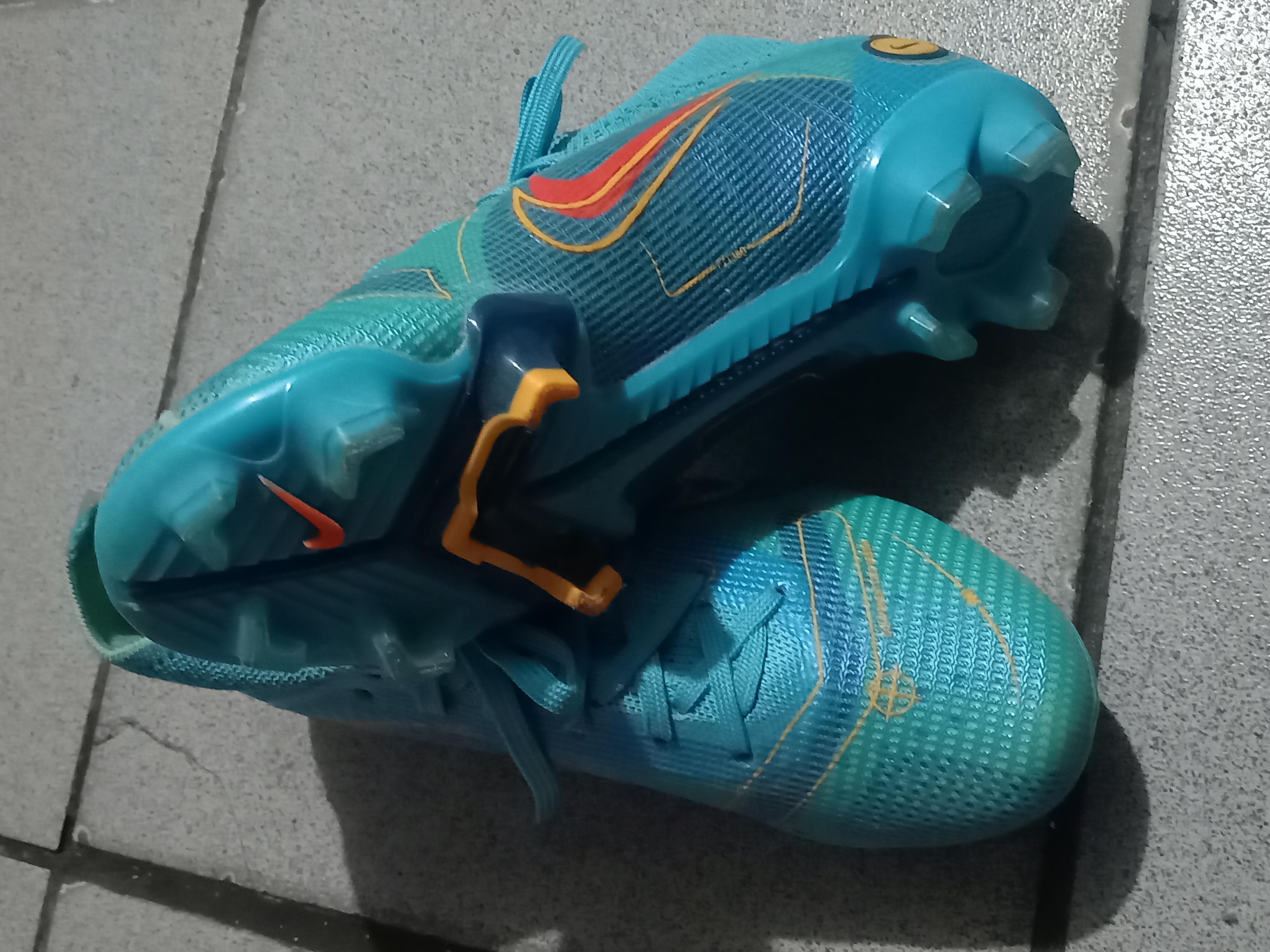 Estos botines Nike Mercurial Vapor están diseñados para ofrecer un rendimiento óptimo en el campo de fútbol. Su color azul vibrante con detalles en naranja y amarillo los hace destacar. La suela cuenta con tacos estratégicamente colocados para mejorar la tracción y el control en superficies de césped. Fabricados con materiales ligeros y resistentes, proporcionan comodidad y durabilidad. El diseño aerodinámico y el ajuste ceñido aseguran un movimiento ágil y rápido. Ideales para jugadores que buscan velocidad y precisión.