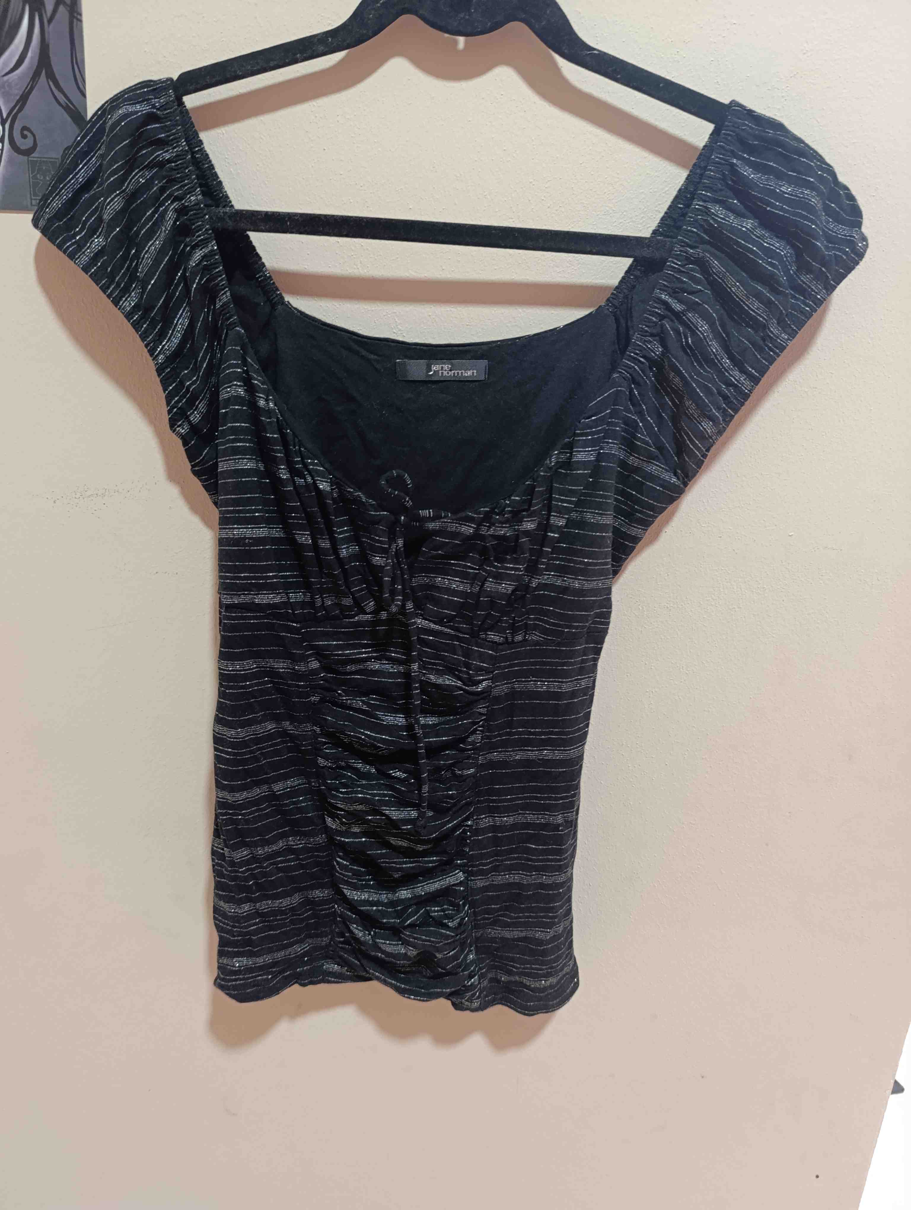 Blusa negra talla 12 (le queda a una S o M). Cede. Tiene para amarrar en el escote y en la espalda. Puedo entregar en Cartago, San José centro, Sabana, Pavas.