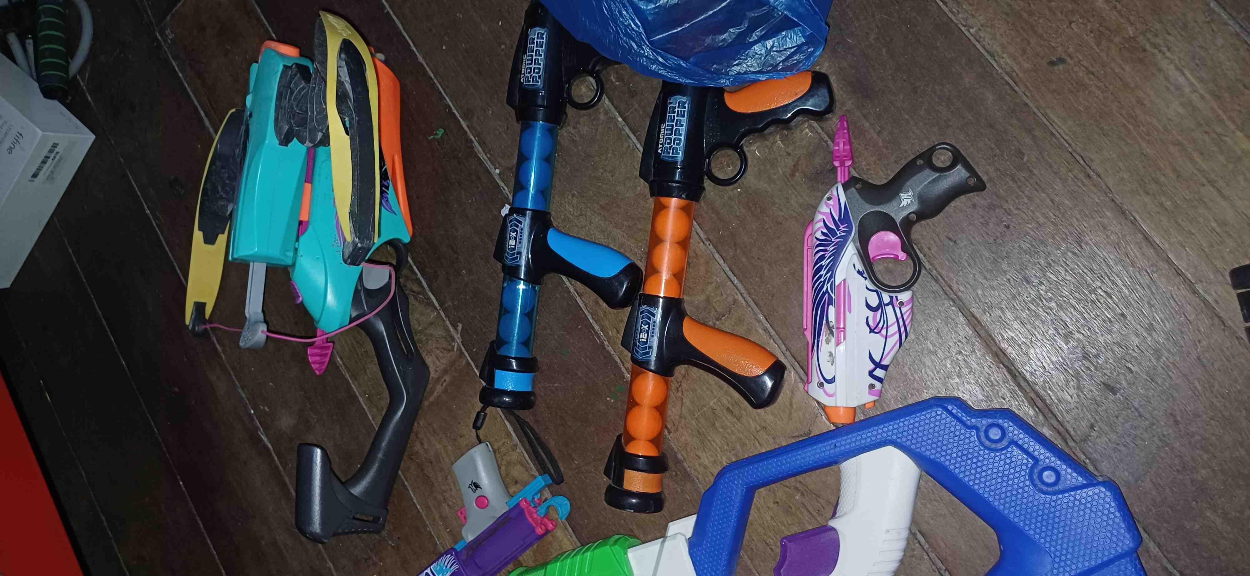Este set incluye varias pistolas de juguete de colores vibrantes, ideales para juegos al aire libre. Las pistolas están diseñadas con materiales plásticos duraderos y ligeros, asegurando horas de diversión para los niños. Cada pistola tiene un diseño ergonómico que facilita su manejo por manos pequeñas. Los colores llamativos y los detalles en cada pistola las hacen atractivas para los más pequeños. Perfectas para fomentar el juego imaginativo y la actividad física.