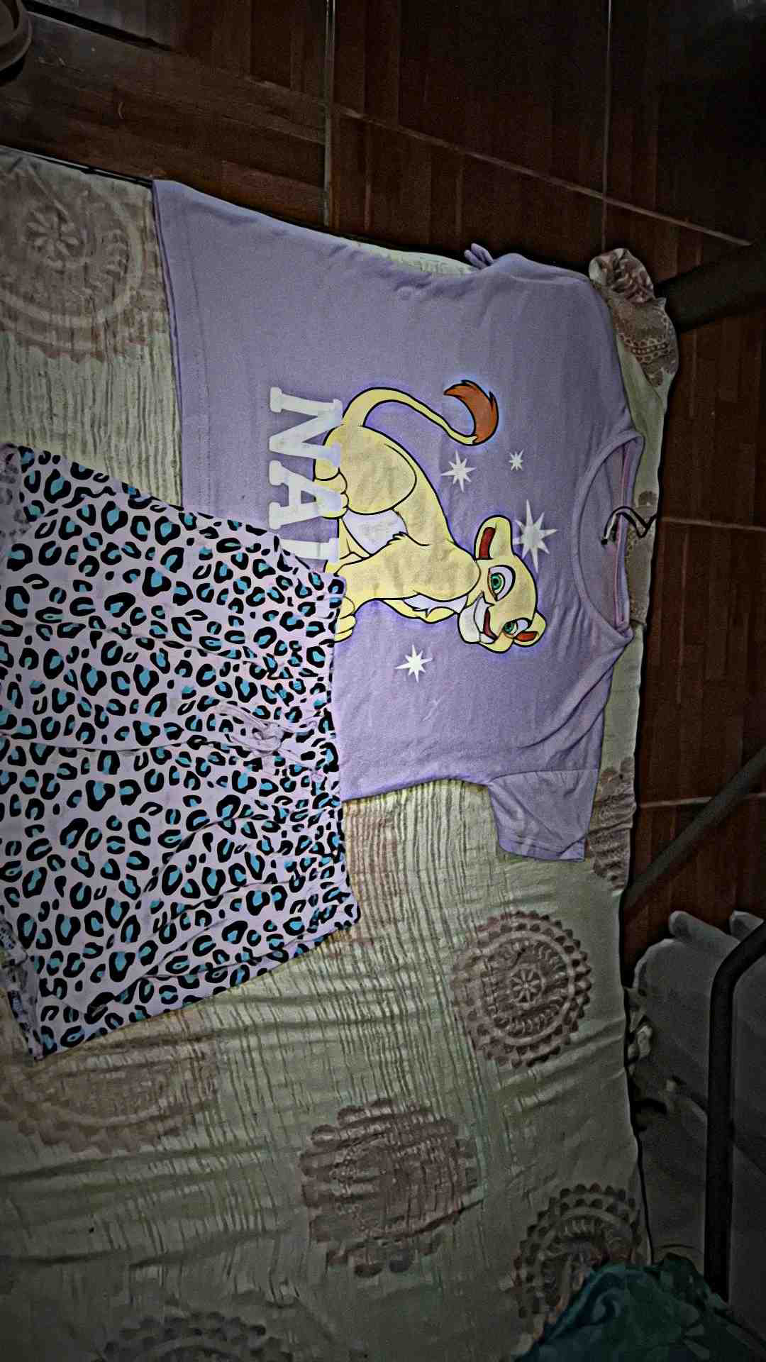 Este conjunto de pijama infantil es perfecto para los pequeños fanáticos de El Rey León. La camiseta de manga corta presenta un diseño de Nala, uno de los personajes favoritos de la película, sobre un fondo lila. El pantalón corto tiene un estampado de leopardo en tonos lila y negro, complementando el tema de la selva. Hecho de materiales suaves y cómodos, es ideal para una noche de sueño reparador. Disponible en varias tallas para adaptarse a diferentes edades.