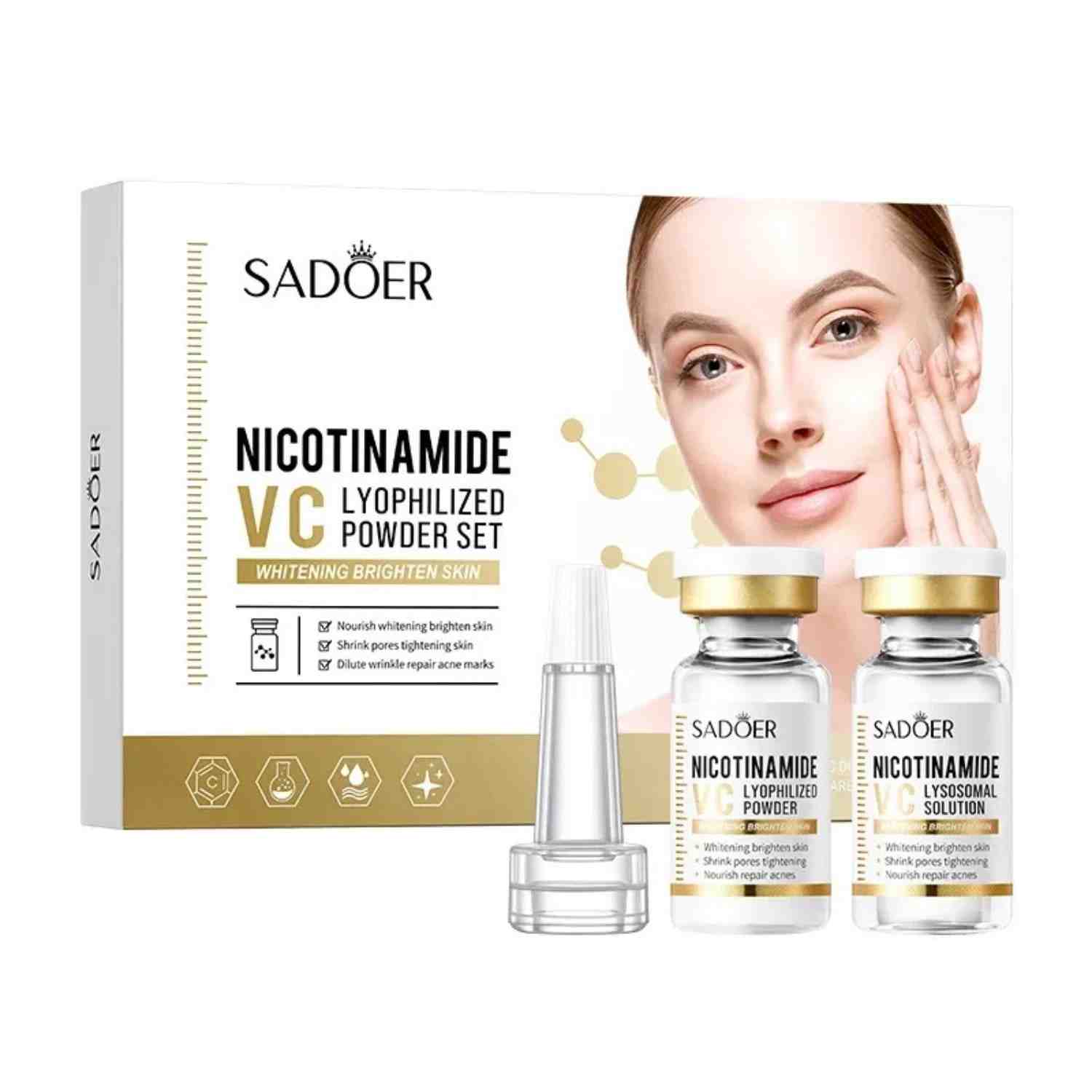 El set de polvo liofilizado de nicotinamida VC de SADOER está diseñado para iluminar y blanquear la piel. Este producto ayuda a nutrir y reparar la piel, reduciendo la apariencia de los poros y mejorando la firmeza. Ideal para quienes buscan un tratamiento efectivo para aclarar el tono de la piel y reducir las manchas. Incluye una solución lisosomal que potencia los efectos del tratamiento. Perfecto para incorporar en la rutina diaria de cuidado facial. 12 pcs. ¿Tienes dudas? ¿Deseas saber cuál producto te puede ayudar? Pregunta por nuestras asesorías GRATIS de Skincare. Somos Gabi's Skin CR. 🌸