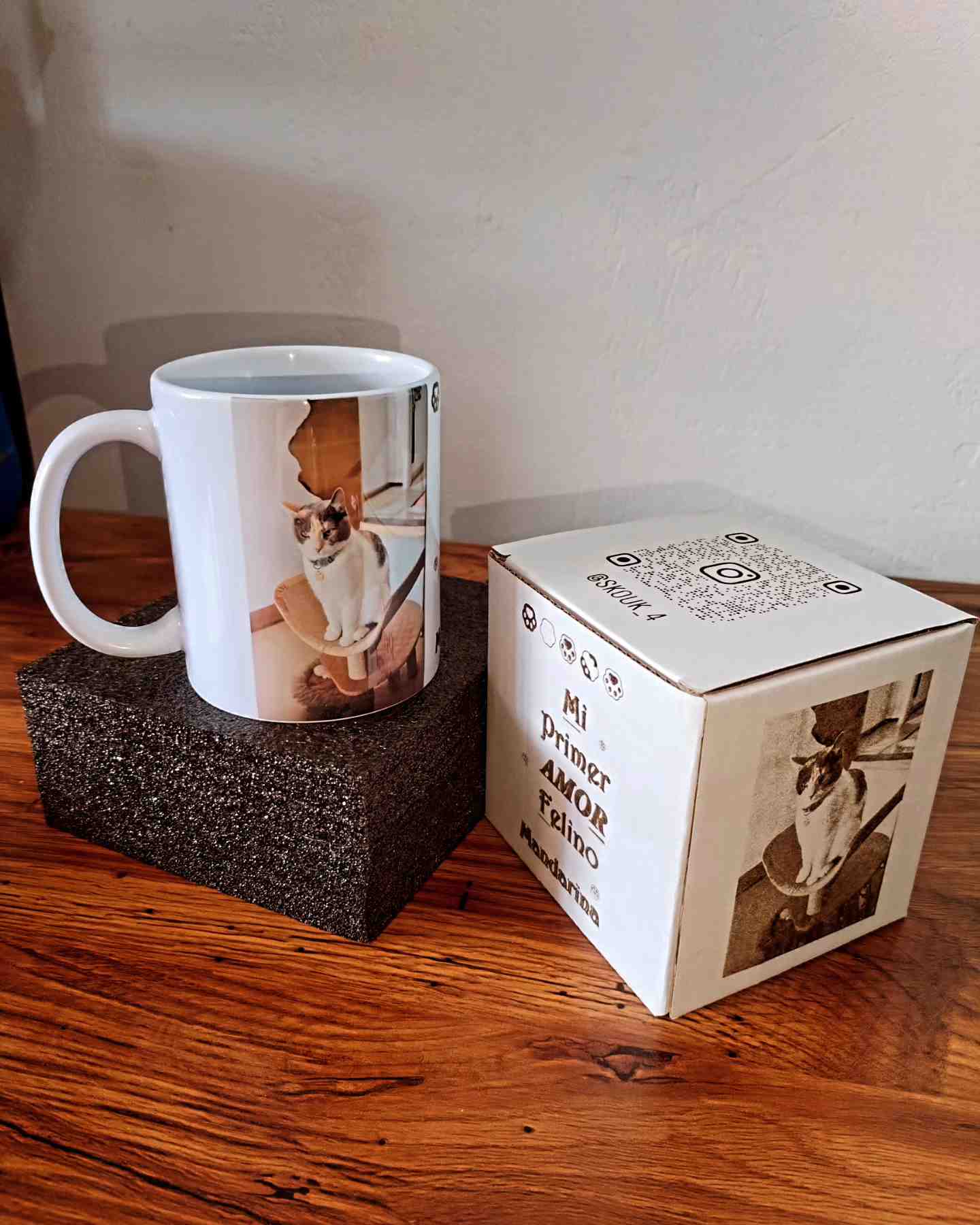 Esta taza de cerámica presenta un encantador diseño de un gato, totalmente personalizado. Su material resistente asegura una larga durabilidad, perfecta para disfrutar de tus bebidas calientes favoritas. Con un asa cómoda, es fácil de sostener y transportar. El diseño impreso es de alta calidad, garantizando que no se desvanezca con el tiempo. Es un regalo ideal para cualquier ocasión especial. La taza viene en una caja decorativa que la protege y la hace aún más especial. Todas las tazas se personalizan a gusto del cliente.