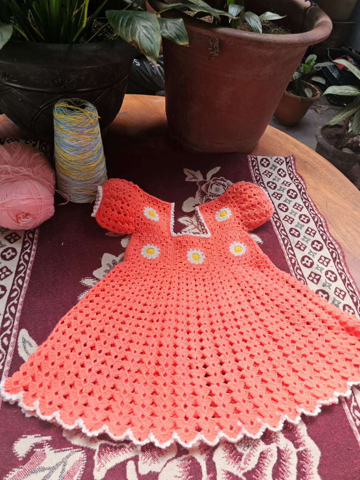 Este encantador vestido tejido a mano es ideal para bebés. Con un diseño de flores en el pecho, el vestido presenta un color coral vibrante que es perfecto para cualquier ocasión especial. Hecho de hilo suave, garantiza comodidad y calidez para la delicada piel del bebé. El patrón de tejido permite una buena ventilación, manteniendo al bebé fresco. Su diseño de manga corta lo hace ideal para climas cálidos. Es una pieza única que combina estilo y funcionalidad.