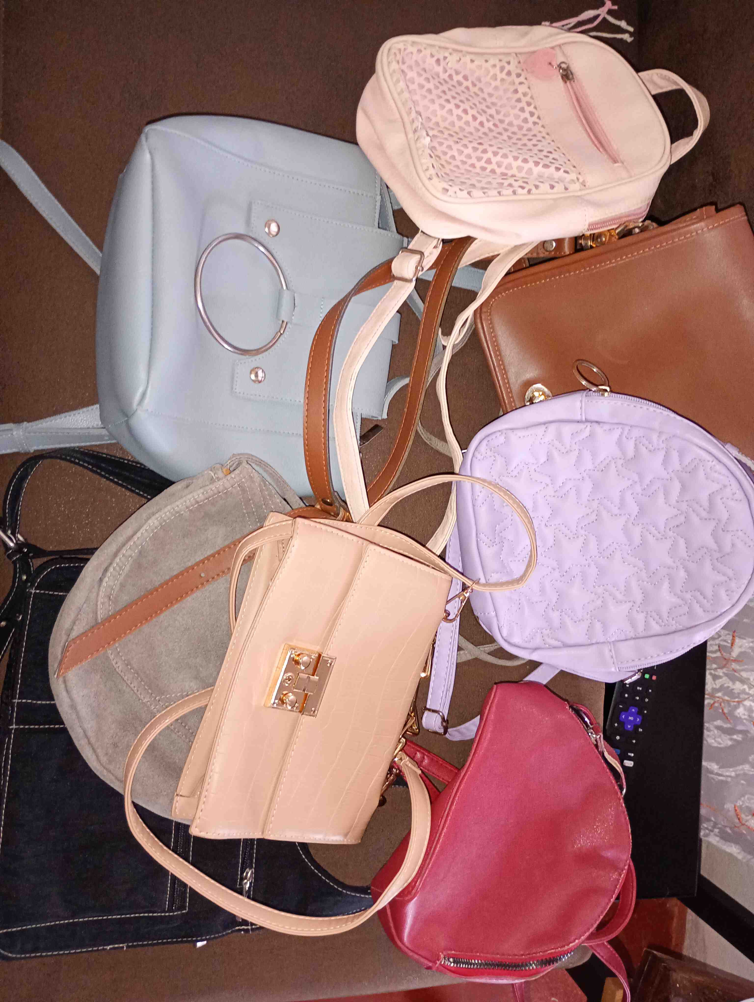 Este conjunto incluye una variedad de bolsos en diferentes estilos y colores, perfectos para cualquier ocasión. Los materiales van desde cuero sintético hasta tela, ofreciendo opciones tanto elegantes como casuales. Los colores incluyen tonos pastel como azul claro y lila, así como colores más vibrantes como rojo y beige. Algunos bolsos cuentan con detalles metálicos y cierres seguros, mientras que otros tienen texturas únicas que añaden un toque especial. Ideales para complementar cualquier atuendo, estos bolsos son prácticos y estilosos.