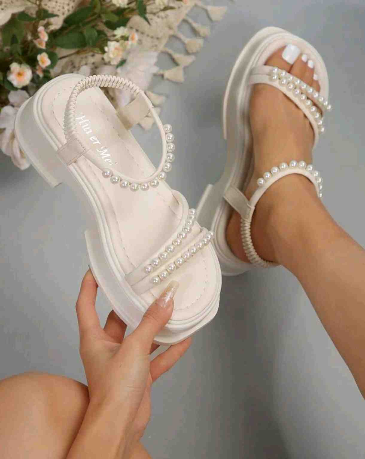 Estas sandalias de la marca Huer son perfectas para el verano. Con un diseño elegante, cuentan con detalles de perlas que añaden un toque sofisticado. La suela es cómoda y resistente, ideal para caminar largas distancias. El color blanco las hace fáciles de combinar con cualquier atuendo. Son ligeras y ofrecen un ajuste seguro gracias a sus correas ajustables.