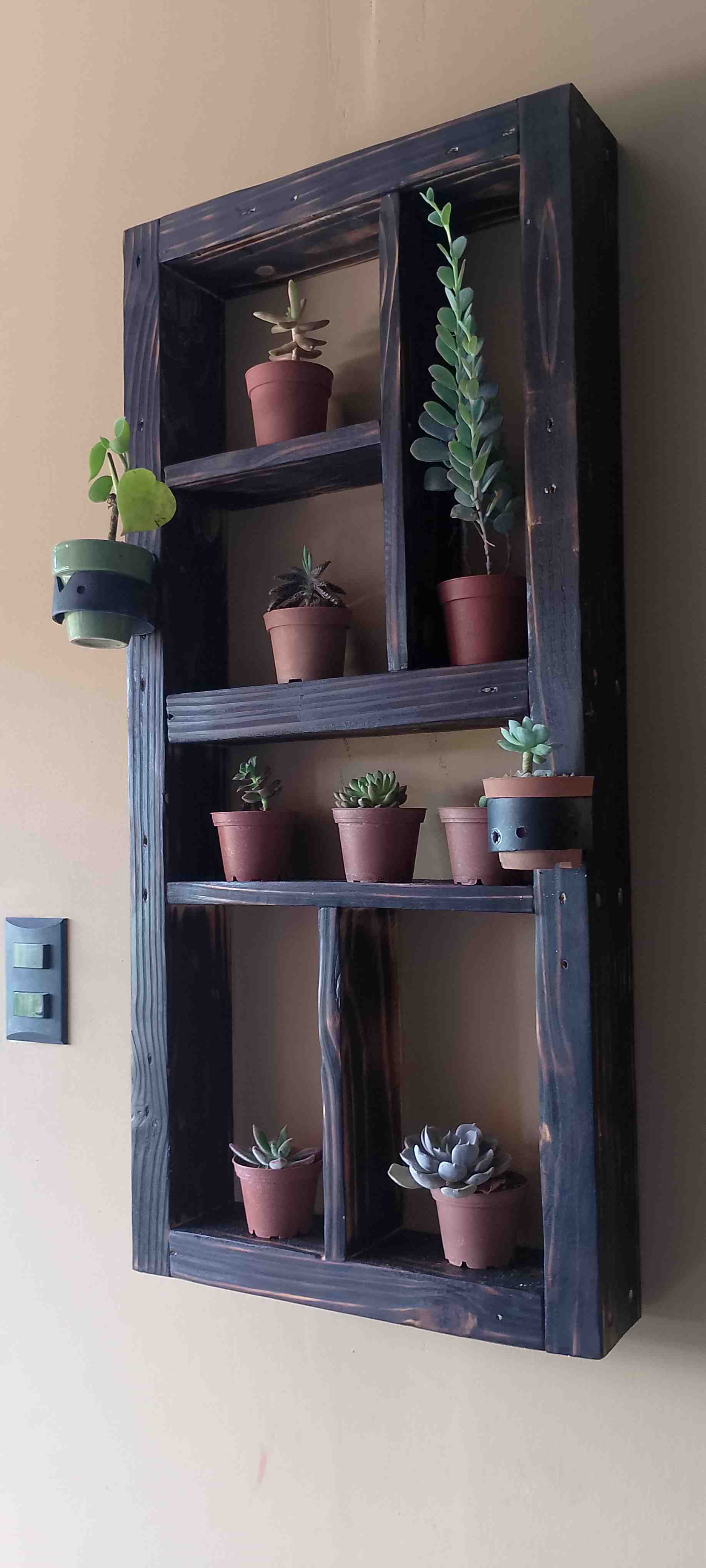 Este estante de madera es ideal para exhibir tus plantas en macetas pequeñas. Con un diseño rústico y acabado en madera oscura, se adapta perfectamente a cualquier espacio interior. Cuenta con múltiples compartimentos que permiten organizar las plantas de manera ordenada y estética. Es perfecto para suculentas y otras plantas pequeñas, brindando un toque natural y decorativo a tu hogar. Su estructura robusta asegura estabilidad y durabilidad..
